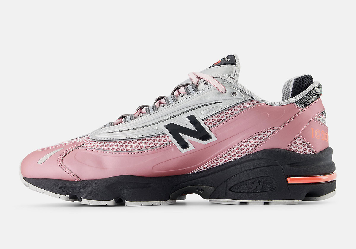 A rather era-appropriate look for the 1999-born runner, official images reveal “Metallic Pink” leather across the heel, mudguard, and toe. The base is cut from matching pink mesh material, while the tongue and upper leather panels shimmer in “Metallic Silver.” Black hits on the “N” logo, interior heel cushioning, and midsole add some edginess, complemented by subtle orange accents on all the “1000” text.