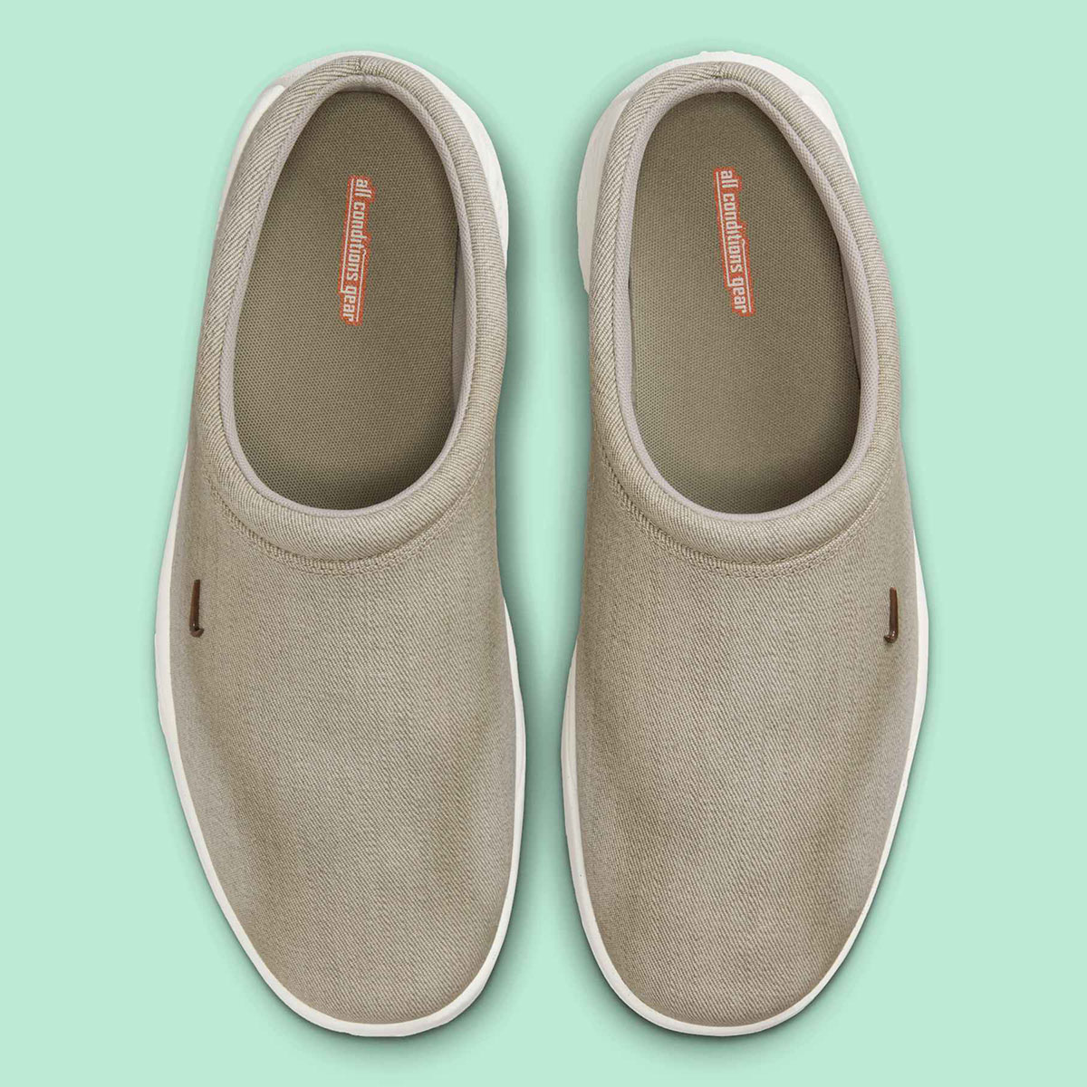 Official images reveal a fairly straight-forward design, with titular “College Grey” settling on the all-denim upper portion. A bronze mini Swoosh appears on the lateral side, while retro Nike ACG branding appears in orange on the footbed. The midsole alternates between “Phantom” and “Soft Pearl,” contrasted by green “Khaki” on the inside section of the outsole.