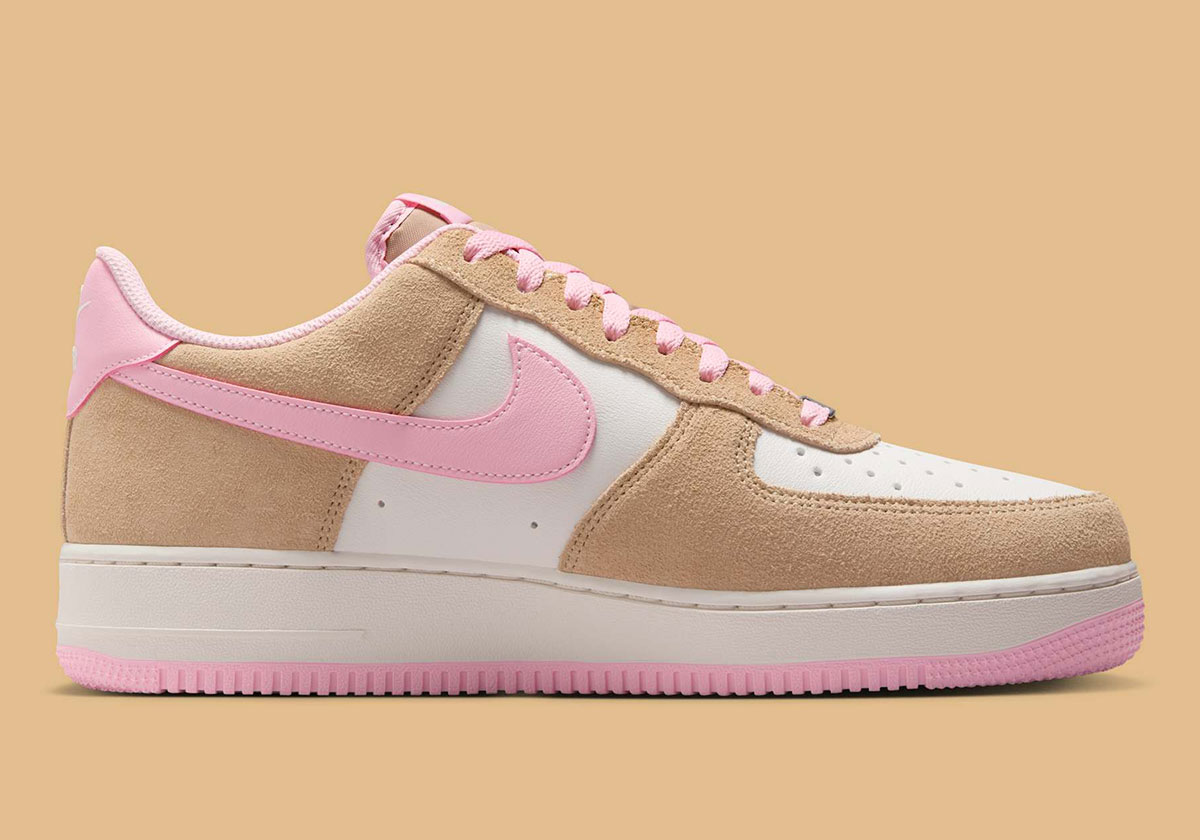Nike seems to be fond of the tan, pink, and white style. The timeless Air Force 1 is going in for seconds with the stylish look in time for the Spring season as it features a darker tan overlay in suede, while a pink oxford leather overlay appears on the Swoosh logo and the heel-tab. The interior, laces, and rubber outsole choose to match the hue, while white leather stands in at the base.