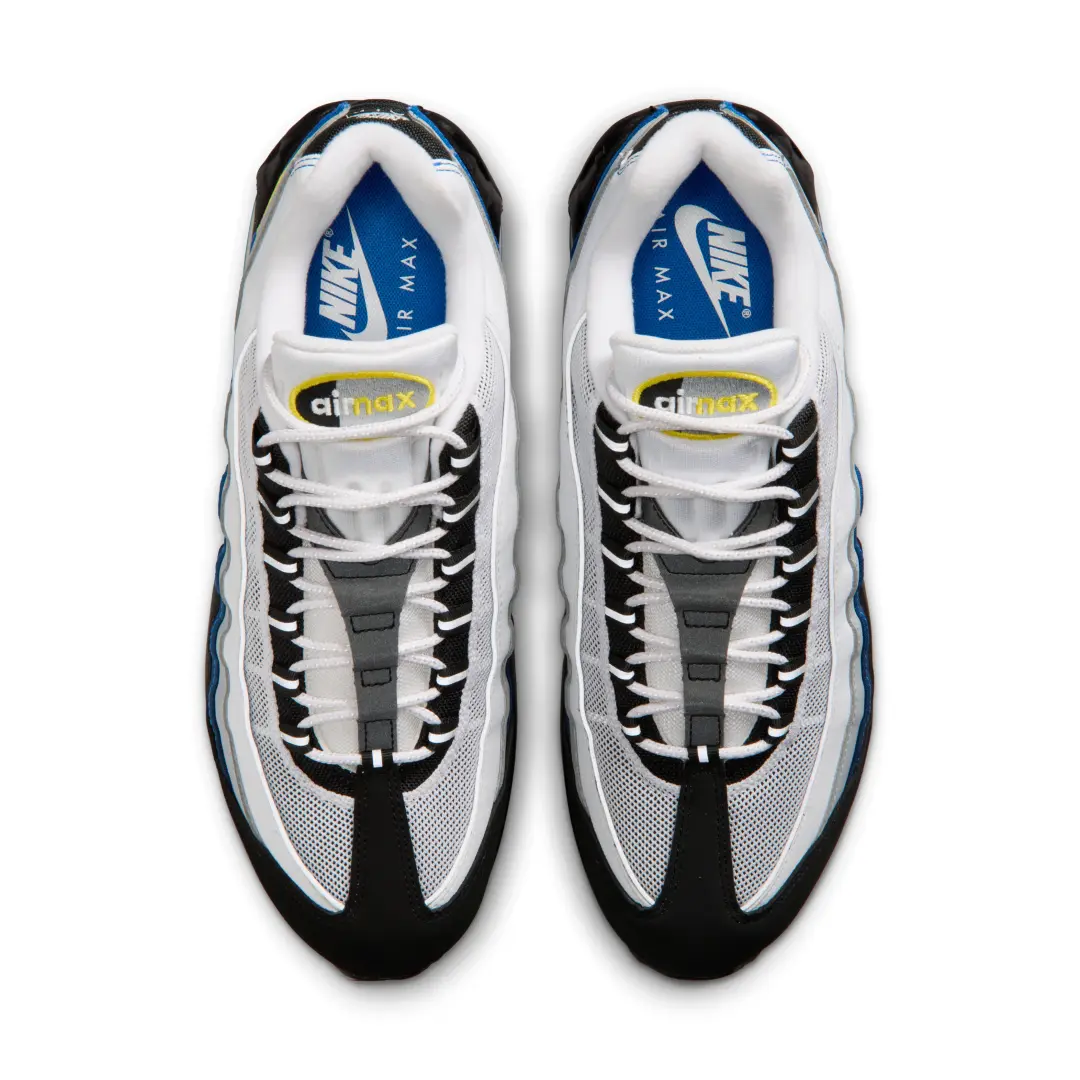 The Air Max 95 kicked off its thirtieth anniversary celebration with a bang last year, reverting to the shoe’s original design with an enlarged Air bubble in the heels. The overhaul follows in the footsteps of the Air Max 1’s Big Bubble release back in 2022, and has been the main version of the 95 we’ve seen for the past year. Nike has released dozens of new and classic colorways in this style, and has shown zero sign of letting off the gas as we head into Spring & Summer 2026. Last week, JD Sports teased a number of upcoming releases, including this subtle “Royal Blue” look. The pair features a white-to-black gradient from top to bottom, split just below the center by a flash of Royal Blue ripstop nylon. The same blue makes an appearance for the shoe’s mini Swoosh, highlighted with an outline in bright yellow.