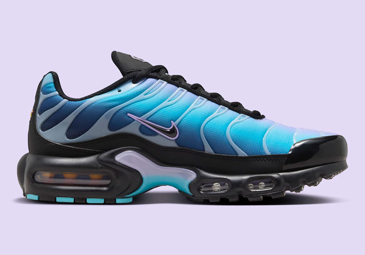 The in-line seasonal releases have filled in those gaps, and promisingly so: Nike’s color team has done an impressive job in creating even more distinct styles — a tough task given the silhouette’s massive catalog. Using the statement gradient arrangement in its favor, this Air Max Plus sees a soothing blend of oceanic blue tones that fade into a light purple at the lace collar, emanating that rare moment during the sunset before the sky turns dark blue. Laid above the mesh is a soft blue exterior TPU, all wrapped together by a black base in the mudguard, outsole, and tongue.