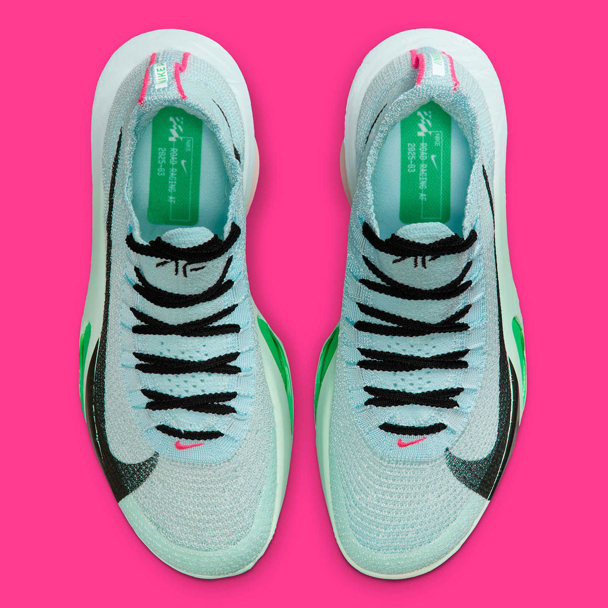 Official images reveal a “Glacier Blue” Flyknit upper and contrasting black Swoosh, with an equally light “Mint Foam” shade settling on the front portion of the midsole. The heel section stands out with a “Hyper Pink/Silt Red” gradient, while “Green Strike” accents settle on the Air Zoom cushioning and outsole. As far as performance goes, the AlphaFly 3 features stacked Air Zoom in the forefoot, a ZoomX foam midsole, and a full-length carbon fiber plate engineered to boost forward propulsion.