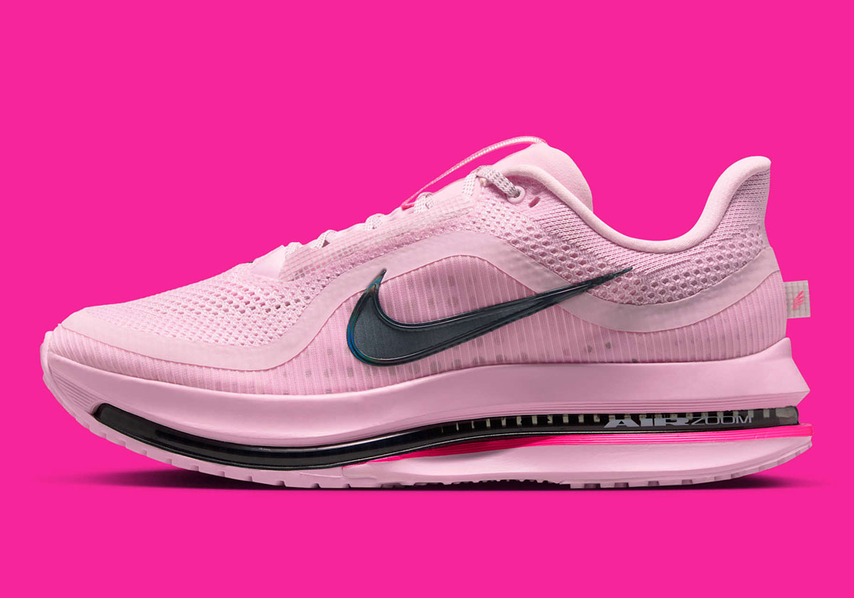 The healthy stream of fresh editions means that we’ve been able to draw connective tissue between multiple color-blocking schemes, and luckily, the “Pink Foam” Nike Pegasus Premium at hand falls into that category. Utilizing the same formula as the earlier-revealed “Volt,” this two-tone split blends a vibrant top shade and subverts expectations by utilizing jet black within the visible Air Zoom unit, supported with conservatively coated Swooshes and otherwise branding notes up top. While it may not be a conventional application, this nonetheless aligns with the flashiness of running wear the company has championed for far predating the Pegasus Premium.