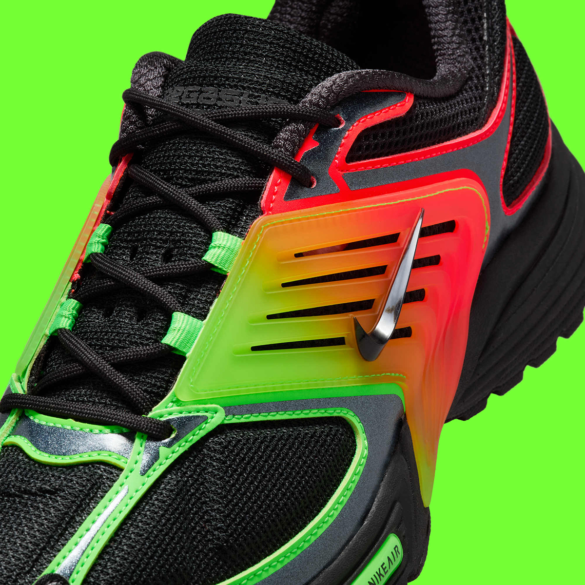 Already with its tech runner composition, the Pegasus Wave would easily mark the “trendiest” take on this spicy concept, yet it furthers that by refusing to limit the gradient pattern to just the synthetic quarter cage. Instead, it continues through piping that coats rear and front overlays, additionally chalking off the interior tongue and forefoot Air tag, respectively, as dueling territory.