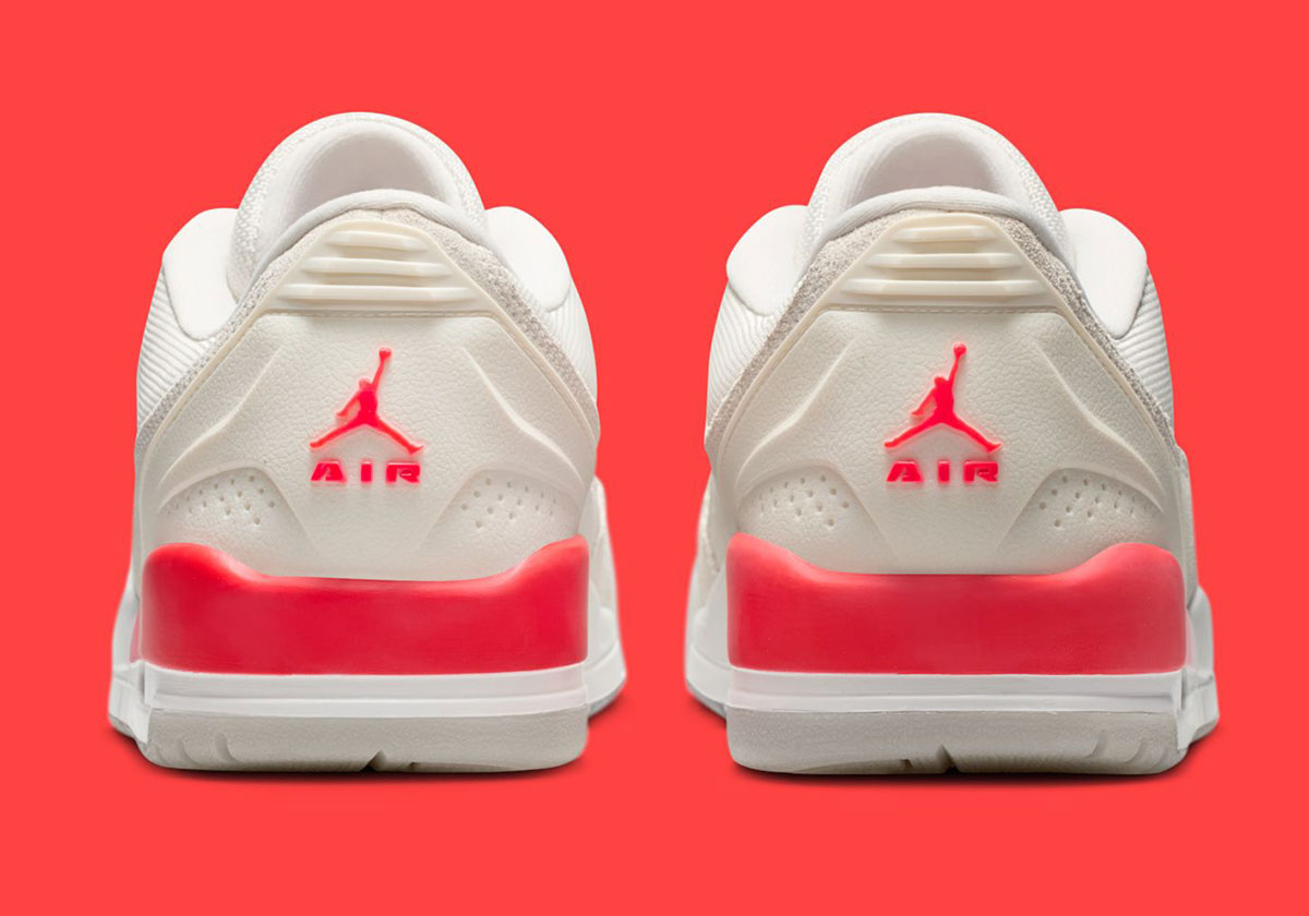 The sole unit borrows directly from Michael Jordan’s third signature model, while the upper blends familiar Air Jordan 3 layering with new TPU enhancements. Phantom canvas sets the foundation on this colorway, paired with a suede mudguard/toe cap and Summit White leather around the forefoot. The most notable update appears at the heel, where a newly designed TPU backtab features sculpted lines, dotted texture, and three small ridges up top, finished with a Jumpman logo above “AIR” text. Infrared 23 accents appear on the midsole and branding here, but like the Jordan 4 RM, the model is expected to move forward with plenty of looks inspired by iconic AJ3 styles.