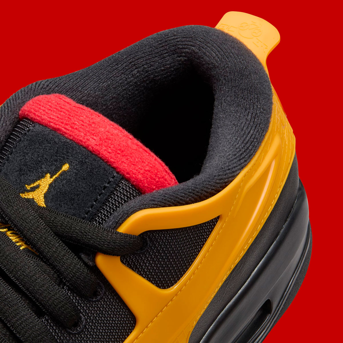 Clad in the same colors as Bruce Lee’s jumpsuit worn in The Game Of Death (1978), the Jordan 4 RM features a black base and complementary yellow cage and outsole. Further strengthening a tie to Lee’s iconic outfit, the shoe comes with red “Nike Air” heel branding to match the tongue lining and Jumpman logo underfoot. The delivery evokes memories of the Nike Kobe 5 Protro “Bruce Lee” from 2020 as well as Onitsuka Tiger’s black and yellow Mexico 66 colorway of the same nickname, conjuring a standout for all fans of Lee’s catalog.