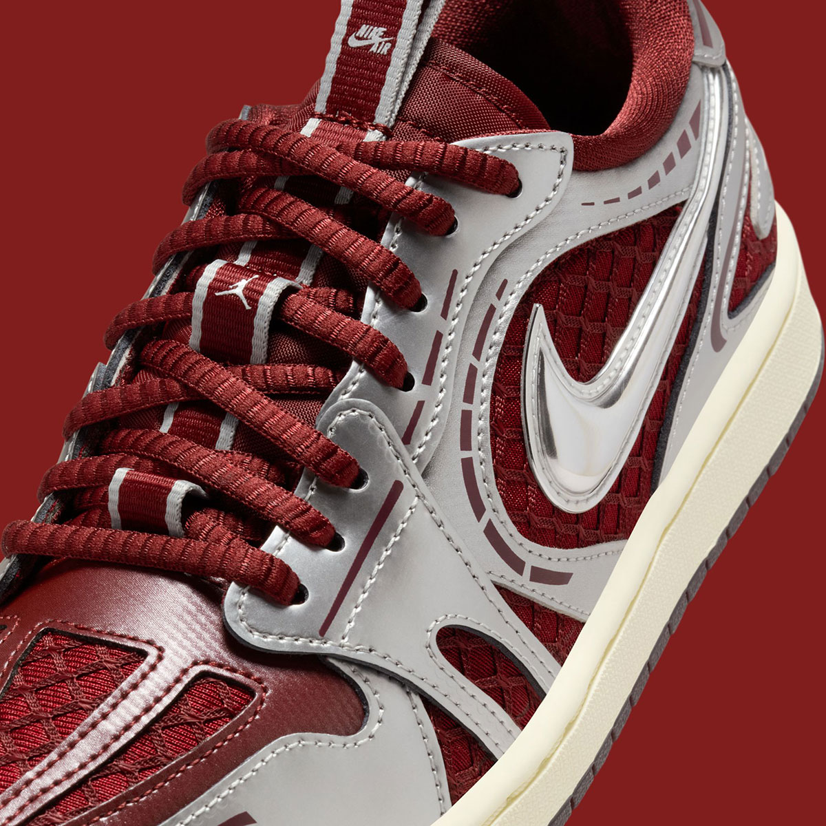 Following the “Sail” and “Black/Silver” Jordan 1 Low Method of Make v3 colorways comes this “Dark Team Red” edition – yet another option slated for Fall/Winter 2025. The titular shade lands on the base layer, covering the tech-runner-inspired forefoot underlays and diamond-patterned mesh fabric. Meanwhile, the overlays and Swoosh logos lean into the shoe’s Y2K inspiration in “Metallic Silver.”