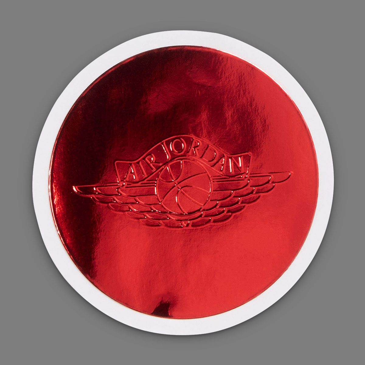 Here we have a new Grade School release for Holiday 2025, built with light grey leather overlays, dark metallic underlays, and a black patent leather Swoosh. As hinted, it’s the add-ons that make this pair stand out. Two stickers are included: one reading “Jordan” and “Inspired By The Greatest” in light blue, and another metallic red sticker featuring the Wings logo. That light blue branding element also makes its way onto the sneakers themselves, appearing on the tongue tag as embossed “Jordan” text over a mirror-like metallic silver base — matched by light blue Jumpman logos on the insoles.