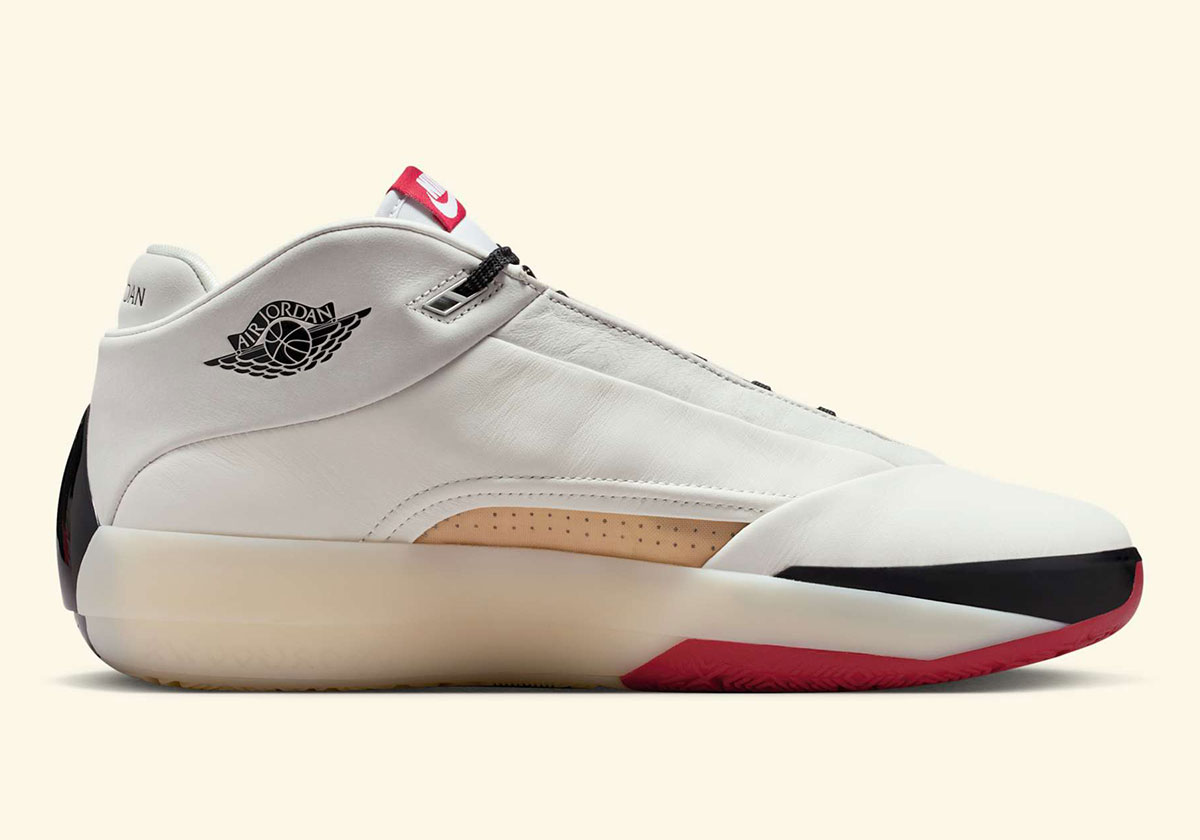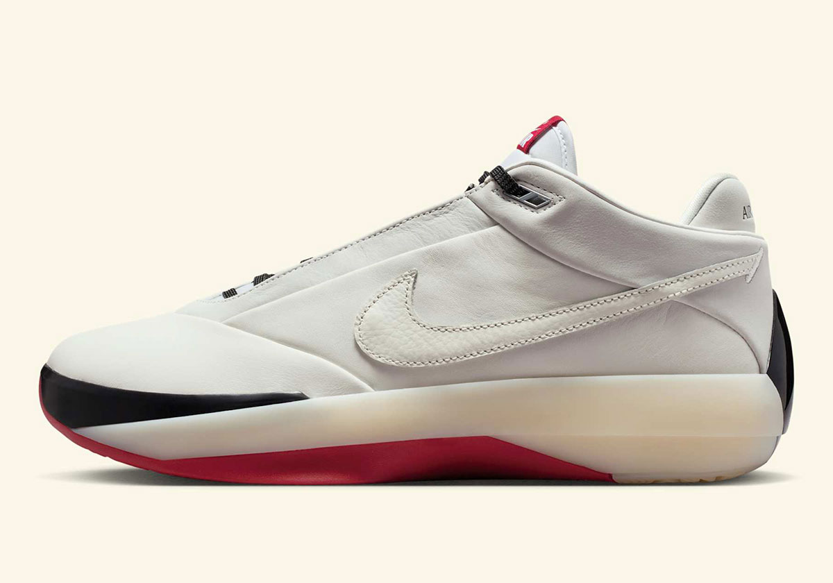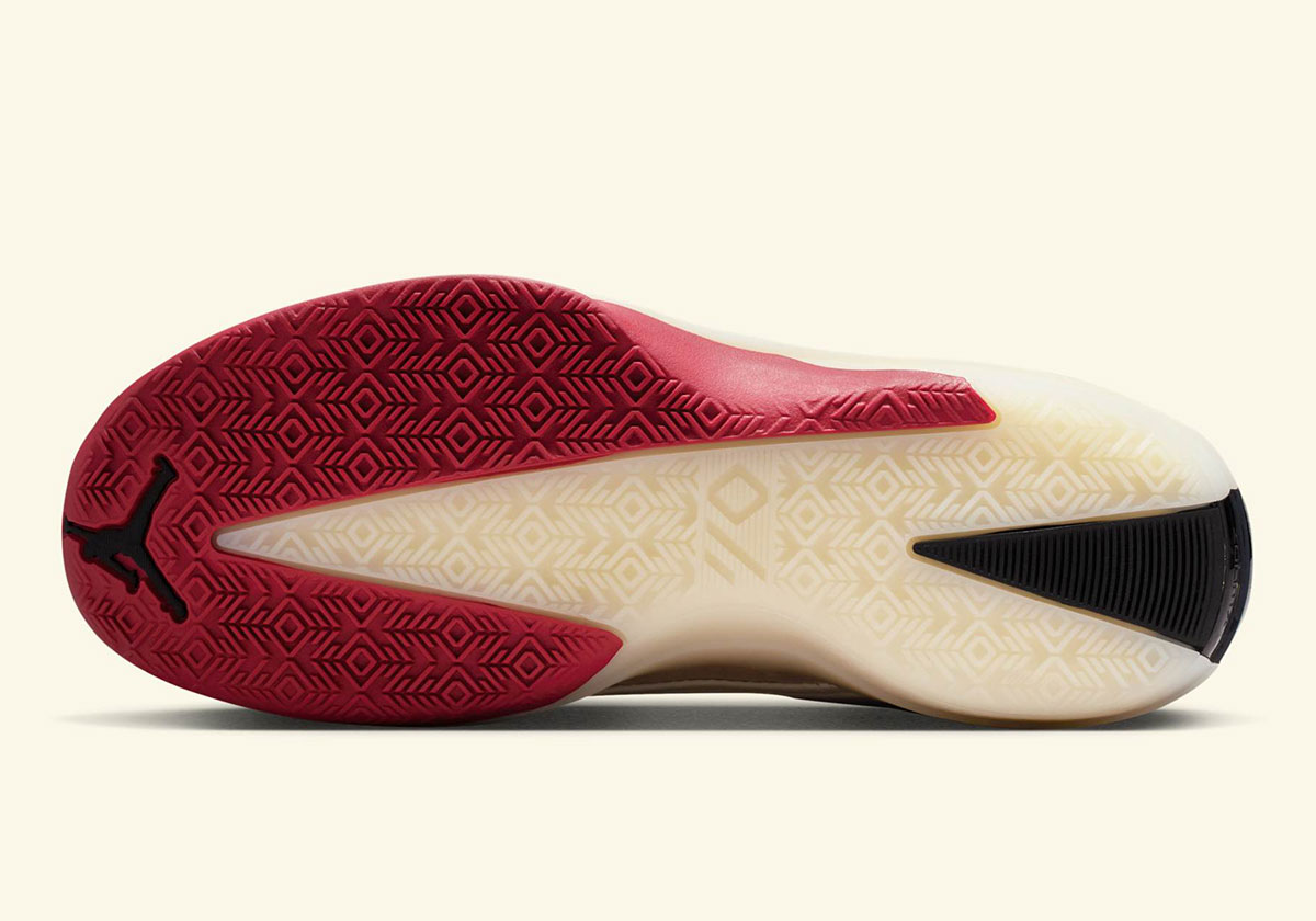 Taking inspiration from the one that started it all, the Jordan 40 here tributes the Jordan 1 with a leather Swoosh on the lateral side and wings logo on the medial collar. The colorway pulls from the Jordan 1 playbook as well, led by “Varsity Red” on the outsole and tongue tag and black on the toe/heel. The upper is cut from premium “Sail” leather, matched by a “Sail” ZoomX midsole underfoot.