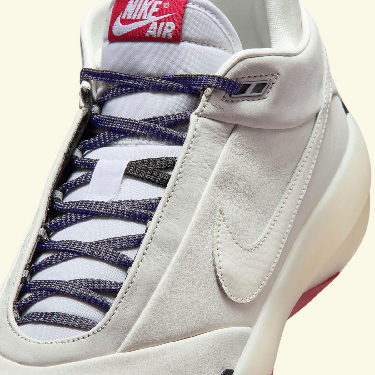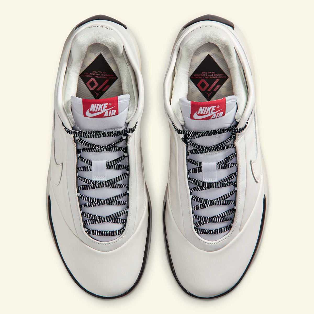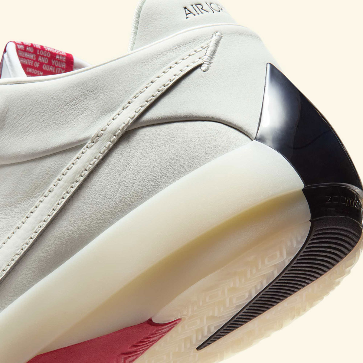 Taking inspiration from the one that started it all, the Jordan 40 here tributes the Jordan 1 with a leather Swoosh on the lateral side and wings logo on the medial collar. The colorway pulls from the Jordan 1 playbook as well, led by “Varsity Red” on the outsole and tongue tag and black on the toe/heel. The upper is cut from premium “Sail” leather, matched by a “Sail” ZoomX midsole underfoot.