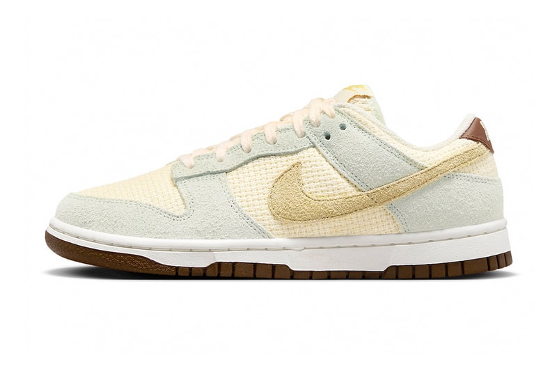 Nike has debuted a brand new Dunk Low that moves away from its traditional leather build.The forthcoming iteration arrives with hemp uppers in an off-white hue, along with muted suede overlays for dual texture. Branding details can be found on the gold suede panel swooshes, tongue tag, swoosh insoles and the white Nike embroidery against the brown leather heel tab. The shoe rests on a white midsole and brown outsole, while matching off-white laces tie the shoe together for a clean finish.Check out the shoe above and stay tuned for a release date.Elsewhere in footwear, take an early look at the Air Jordan 6 "Aqua." Click here to view full gallery at Hypebeast