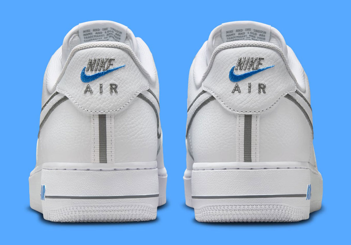 Eyes are first drawn to the heel, where reflective fabric runs down from the backtab to the top of the midsole. “Light Photo Blue” hits appear on all the branded elements, including the backtab, tongue tag, and “AIR” text underfoot, and “Cool Grey” enters the mix on an added Swoosh border. The rest of the design keeps it traditional with white leather, save for texture swaps to ballistic material on the lateral and medial quarter panels. All in all, the minor changes work to deliver a more futuristic feel to the retro basketball-turned-lifestyle staple.