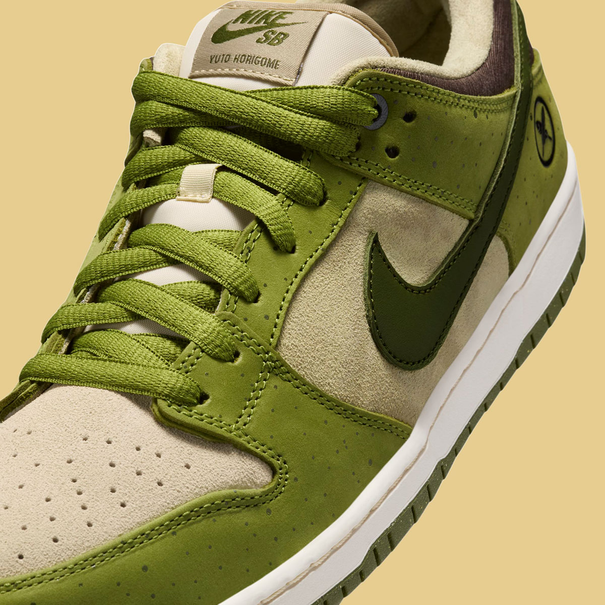 Considered one of 2023’s best sneaker releases, the Yuto Horigome x Nike SB Dunk Low was one of the hottest commodities among young skaters looking to emulate the Japanese native as well as shoe fanatics that only want the best in their rotation. In 2025, Yuto and the Swoosh are following up that incredible drop with a second “Asparagus” version that sees an updated color palette on the upper aligned with a speckled upper on the green suede and a new insole graphic. Yuto’s feather logo is the mainstay here, appearing once more on the heel.